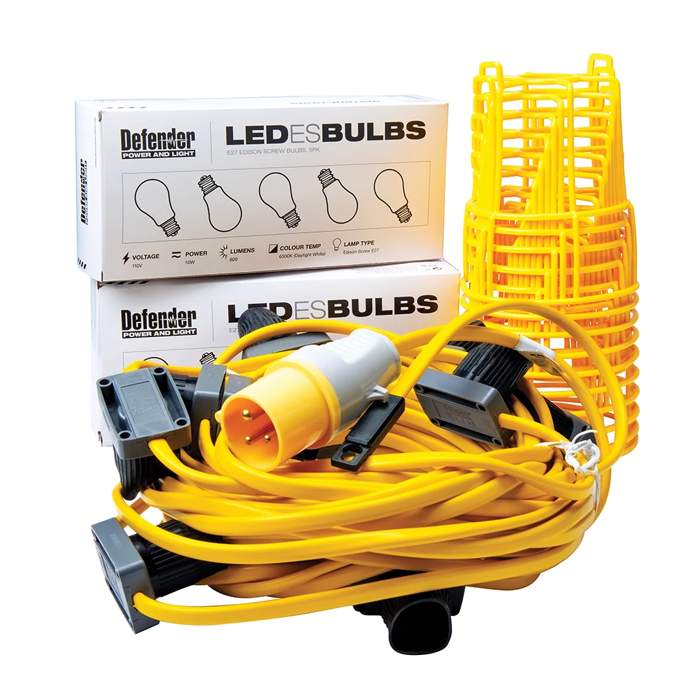 - Traditional-style festoon with fitted LED ES 10W bulbs & guards
